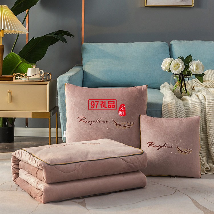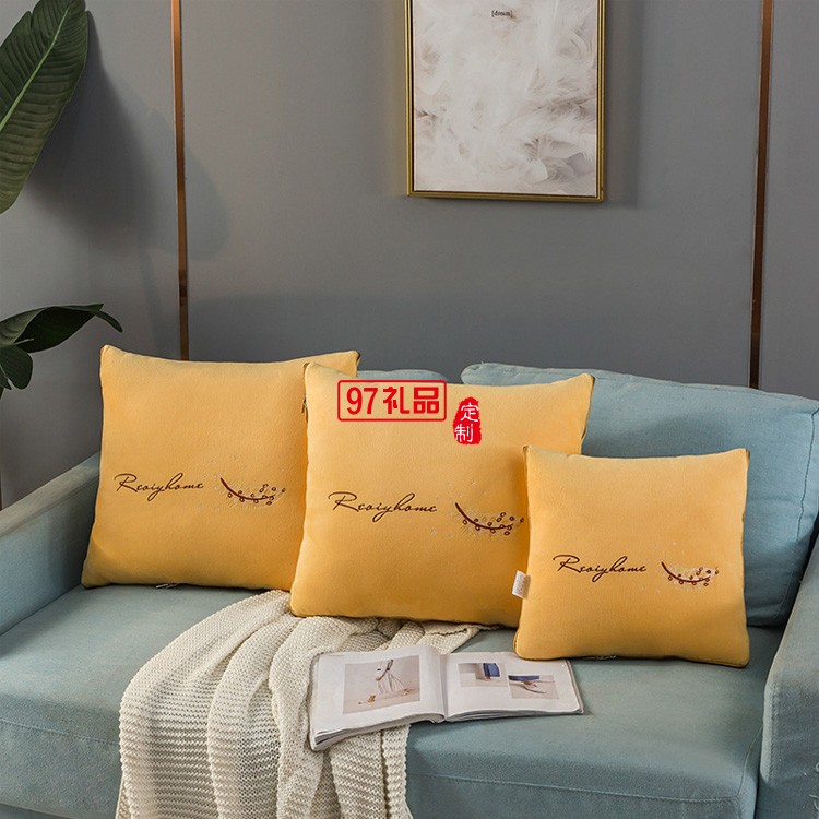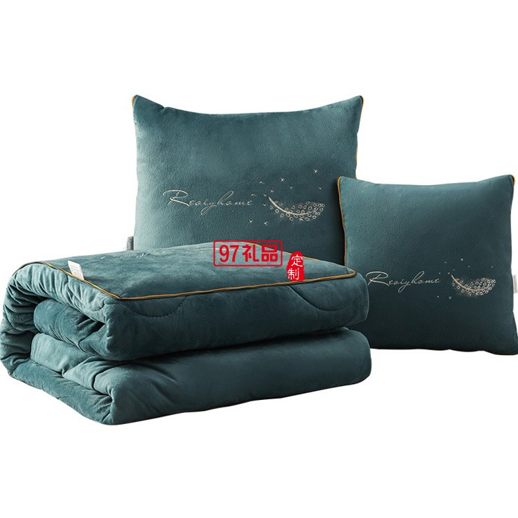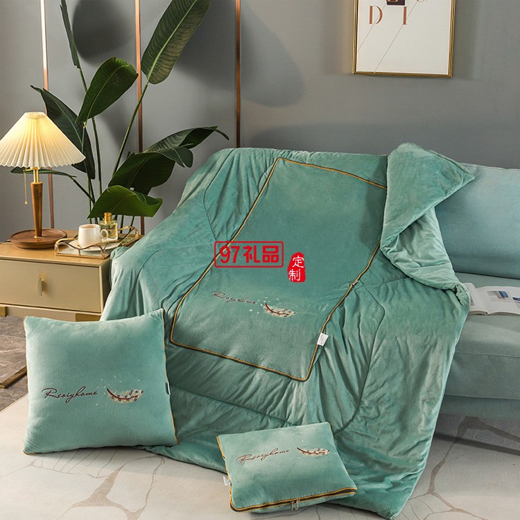 水晶絨絎縫抱枕被—羽毛刺繡靠墊被兩用小被子