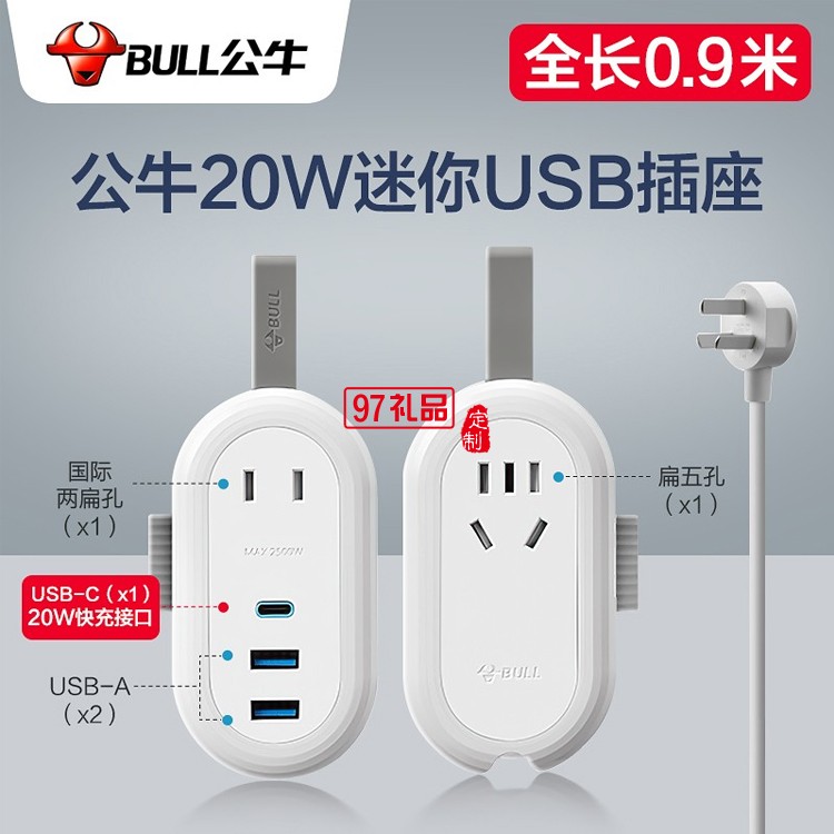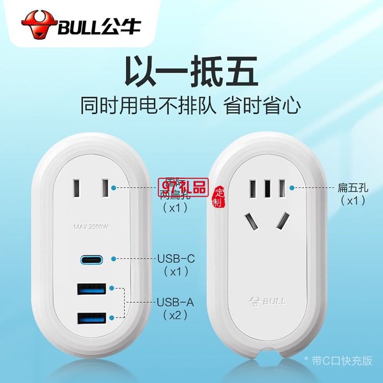 公牛旅行便捷插座差旅接線板快充轉(zhuǎn)接器UU5202定制公司廣告禮品