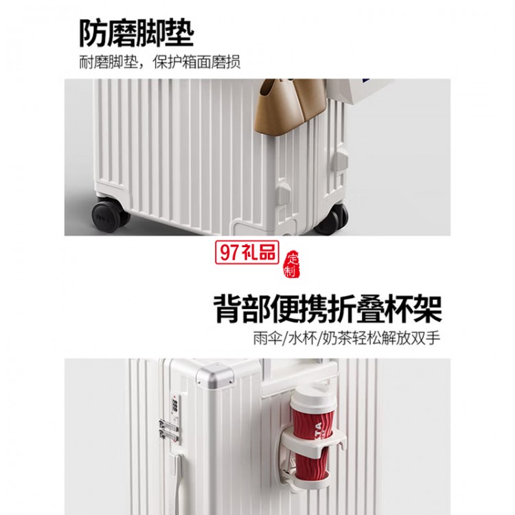 ①后背折疊杯架 ②TPE+PP輕音萬向輪