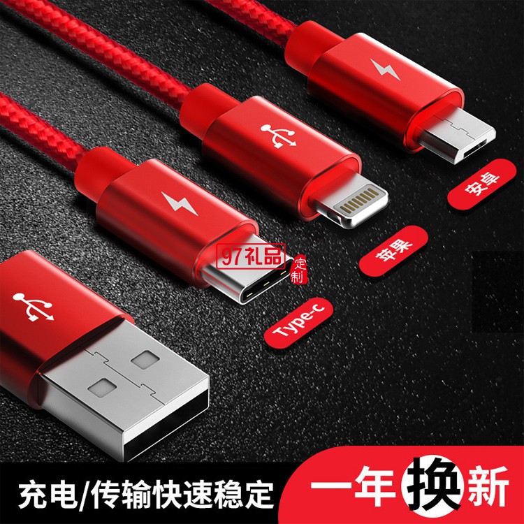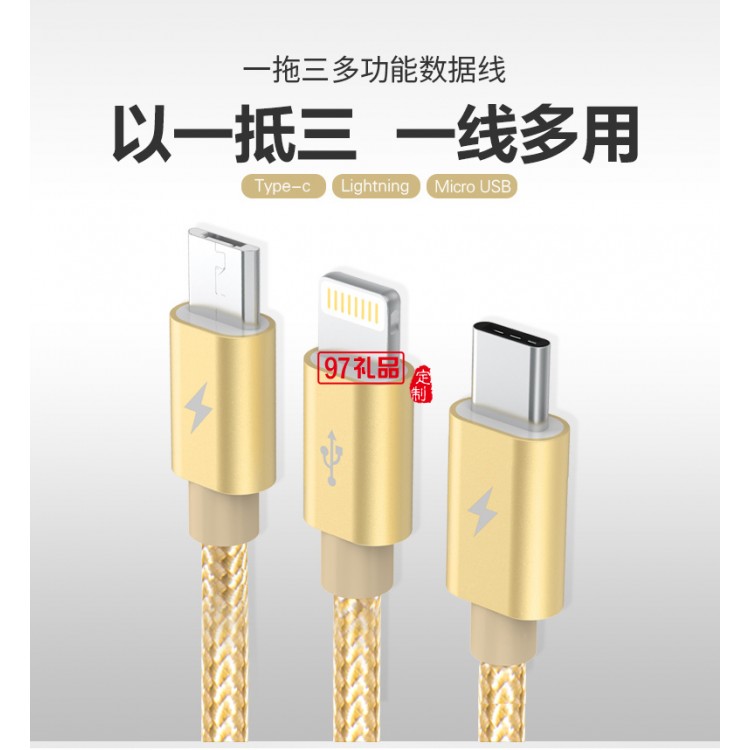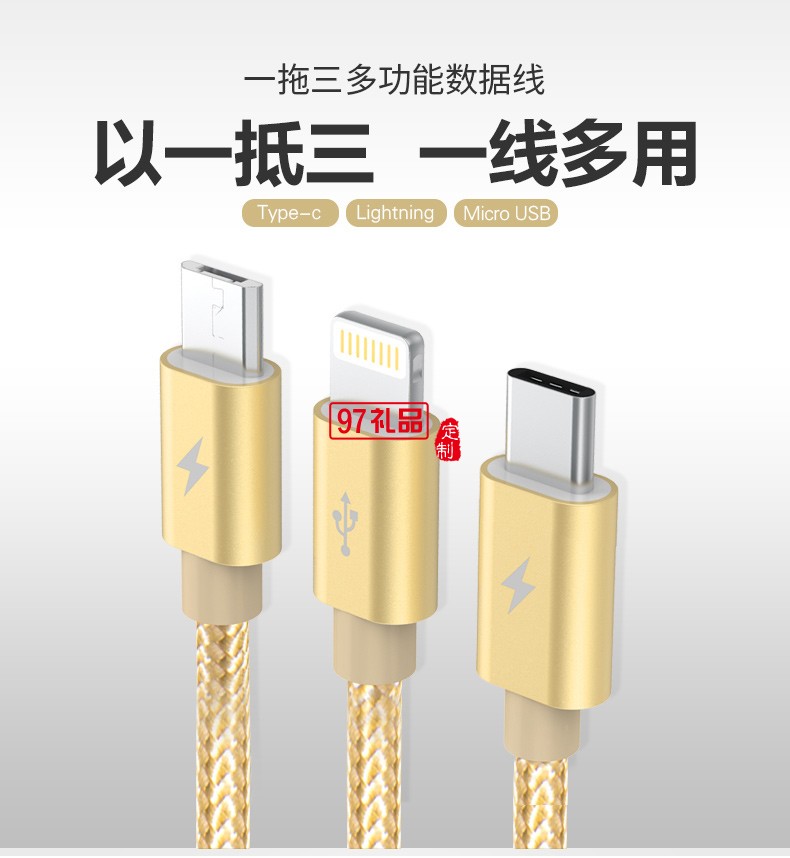 只要一條數(shù)據(jù)線,分別支持MicorUSB Ligntning Type-C三種端口,