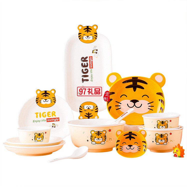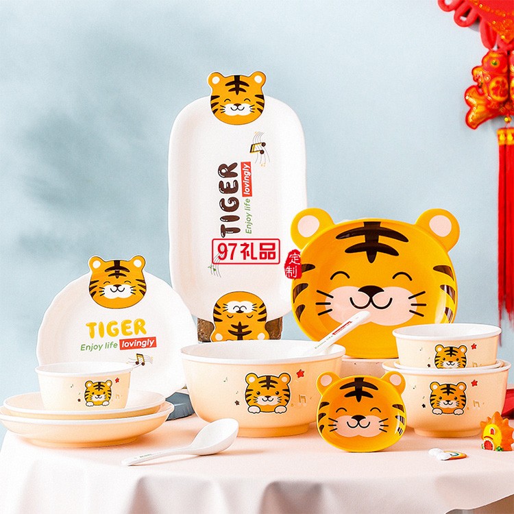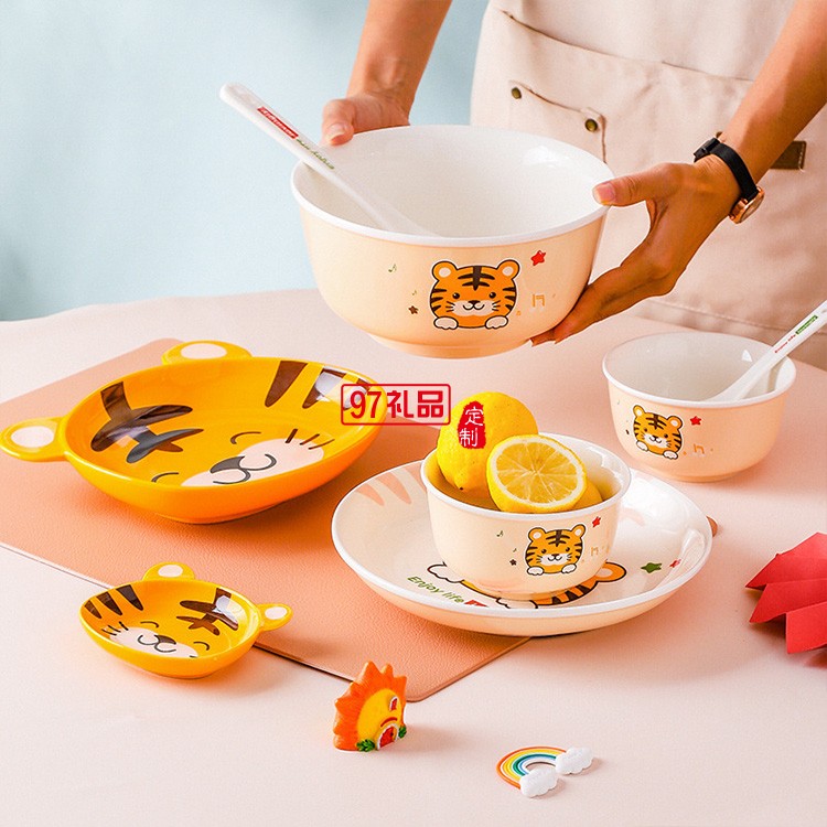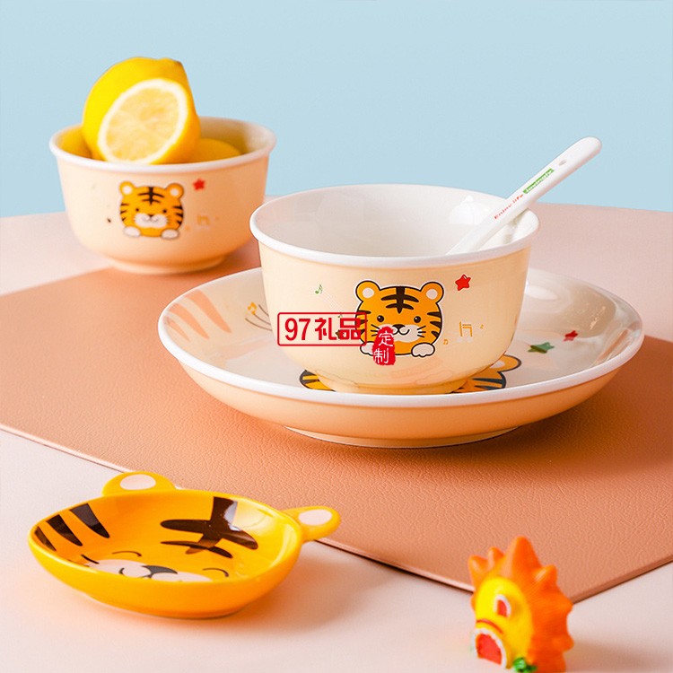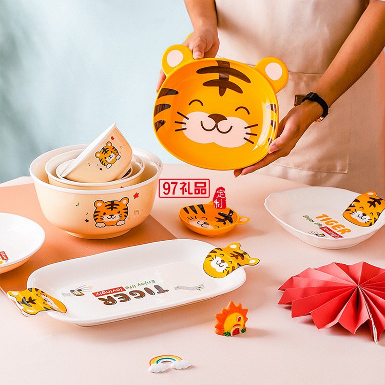 虎年新年陶瓷老虎餐具新款卡通吃飯碗套裝禮盒家用中式餐具碗碟盤(pán)