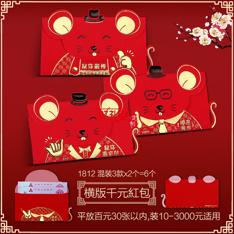 鼠年紅包結(jié)婚慶紅包婚禮復(fù)古燙金千元紅包節(jié)日禮品定制