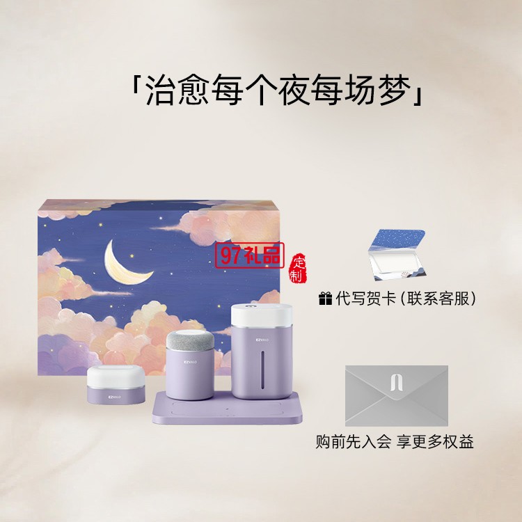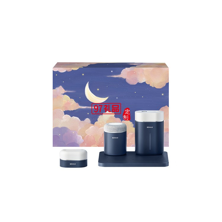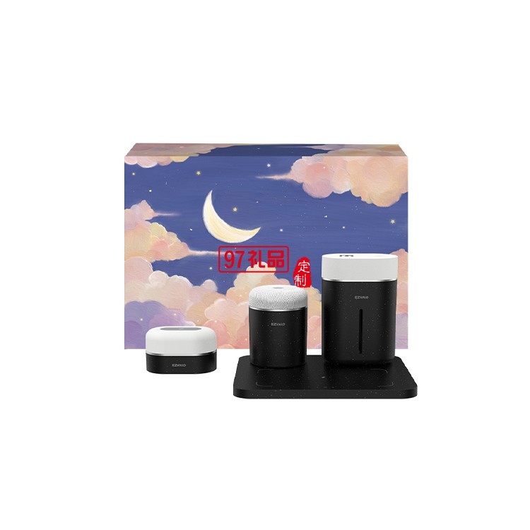 高端創(chuàng)意科技感禮品定制無(wú)線充電器+藍(lán)牙音箱+加濕器+拍拍燈四件套禮盒