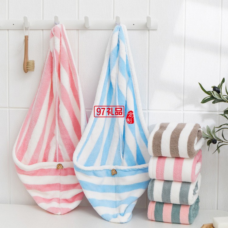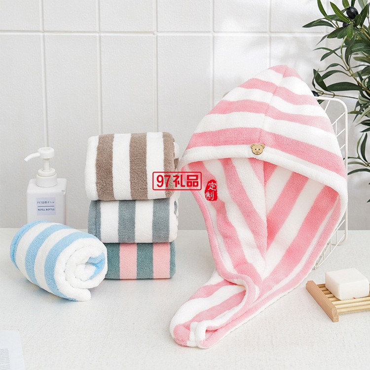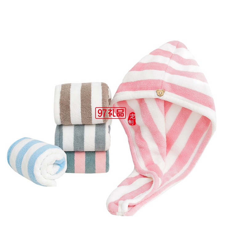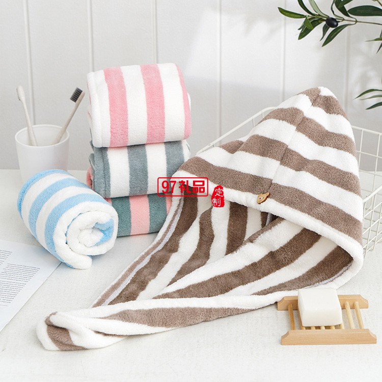 日系超細(xì)纖維加厚珊瑚絨陽離子干發(fā)帽可愛包頭巾吸水速干條紋浴帽
