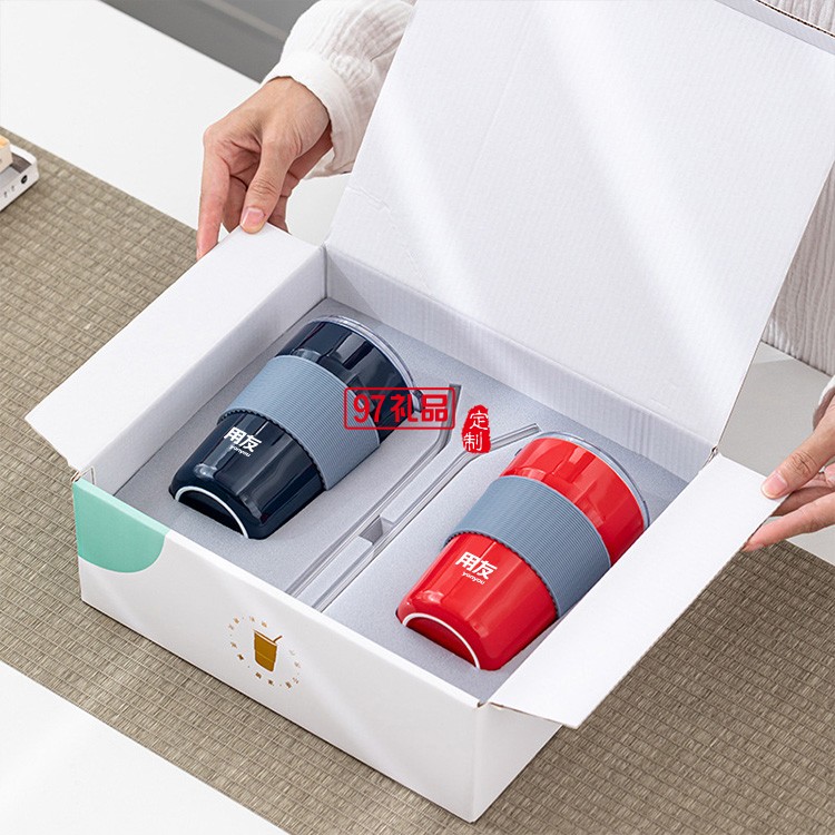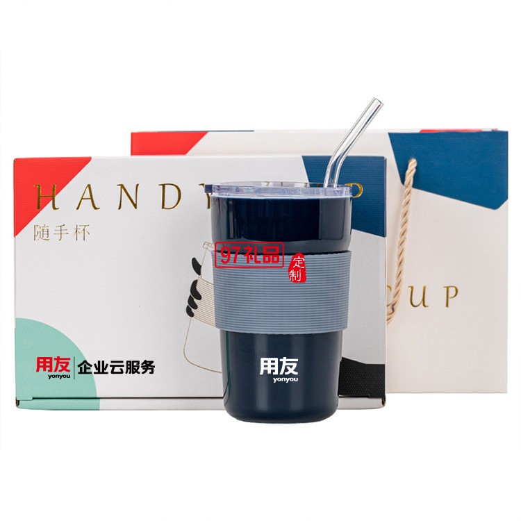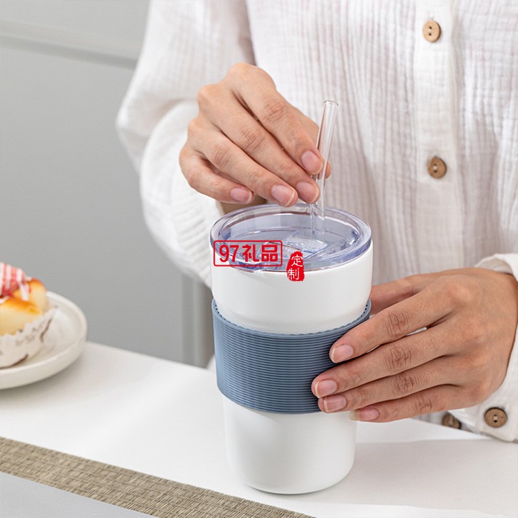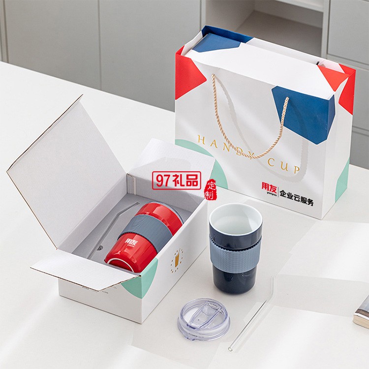 用友定制 新品時尚咖啡杯帶蓋網(wǎng)紅隨行冷萃奶茶杯陶瓷杯 可定制logo
