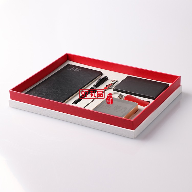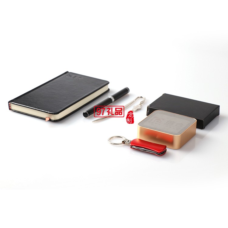 筆記本+筆+金屬書簽+移動電源+名片夾+工具鑰匙  信合商務定制案例