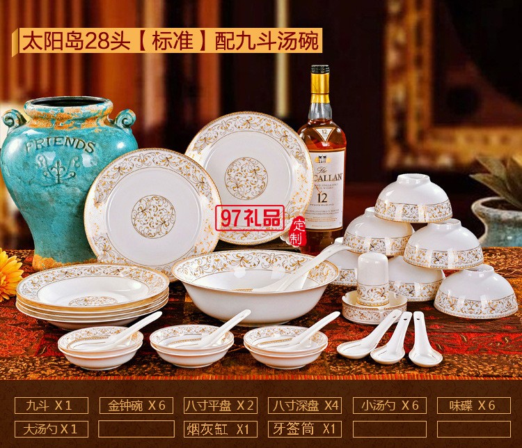 28頭及56頭骨瓷餐具套裝太陽(yáng)島碗盤(pán)碟