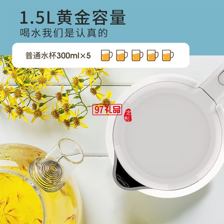 九陽(yáng)電熱水壺開(kāi)水壺雙層壺體開(kāi)水煲K15FD-W370定制公司廣告禮品