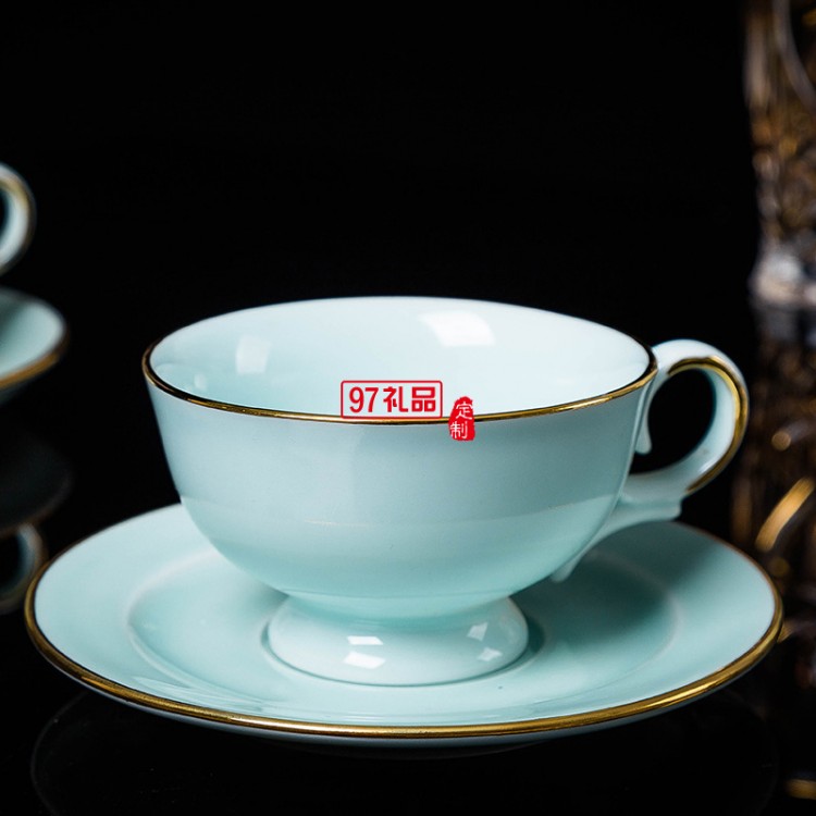 陶瓷餐具景德鎮(zhèn)青玉瓷手繪金邊碗碟套裝白瓷家用禮品定制青瓷套碗
