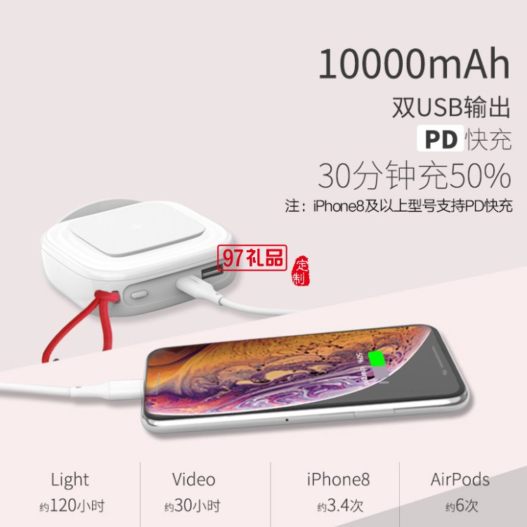 顏色 天貓紅,櫻花粉,白色 電源容量 10000mAh