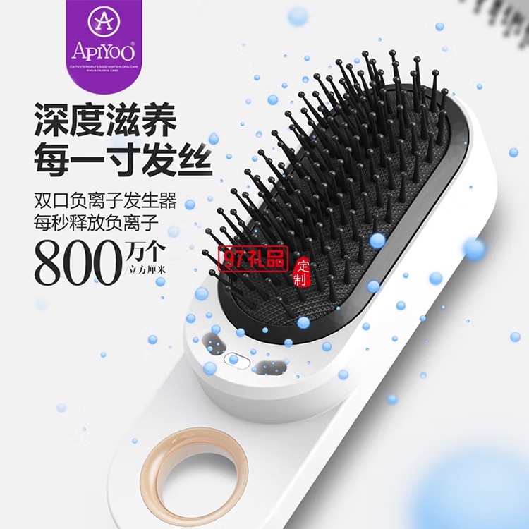 ApiYoo艾優(yōu)負(fù)離子直發(fā)梳An8 舒適震動(dòng)按摩直發(fā)器定制公司廣告禮品