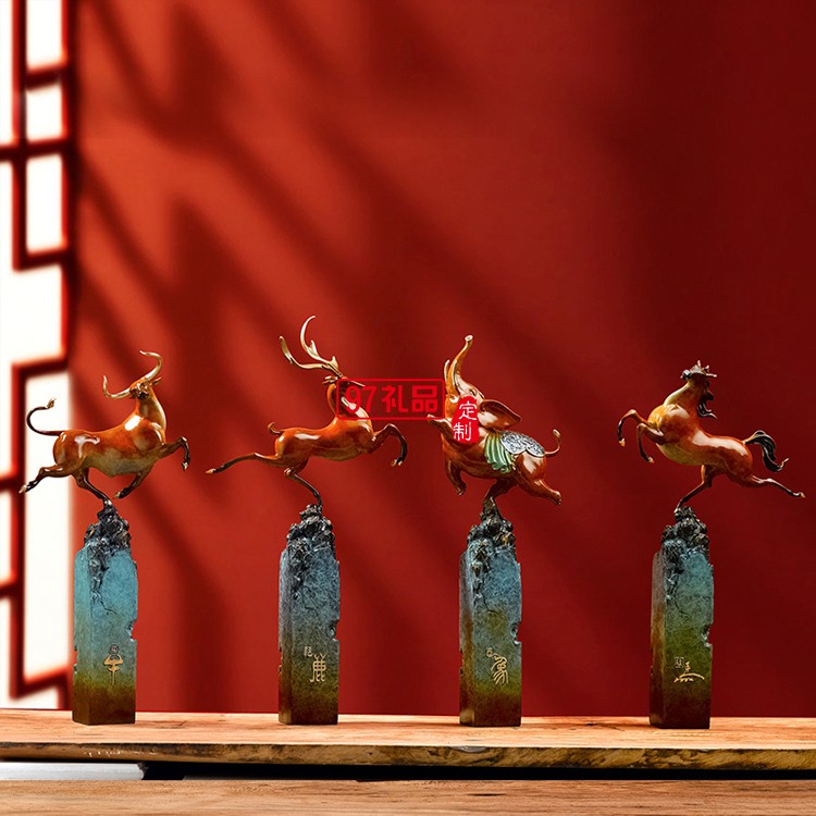 彩銅瑞獸麒麟純銅一對辦公室客廳擺件