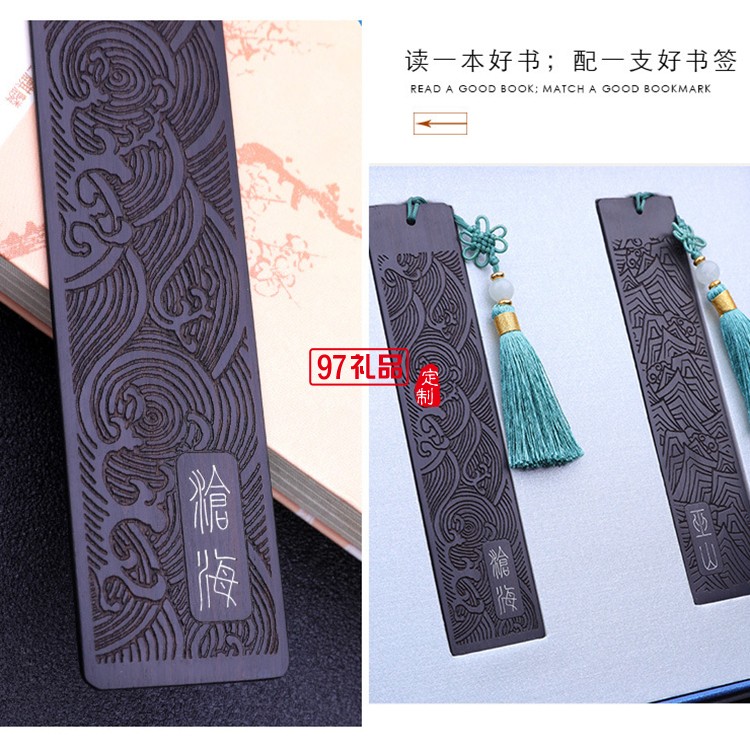特色黑檀木對書簽 典雅木質(zhì)禮品 可加logo刻字 巫山滄海紫檀書簽