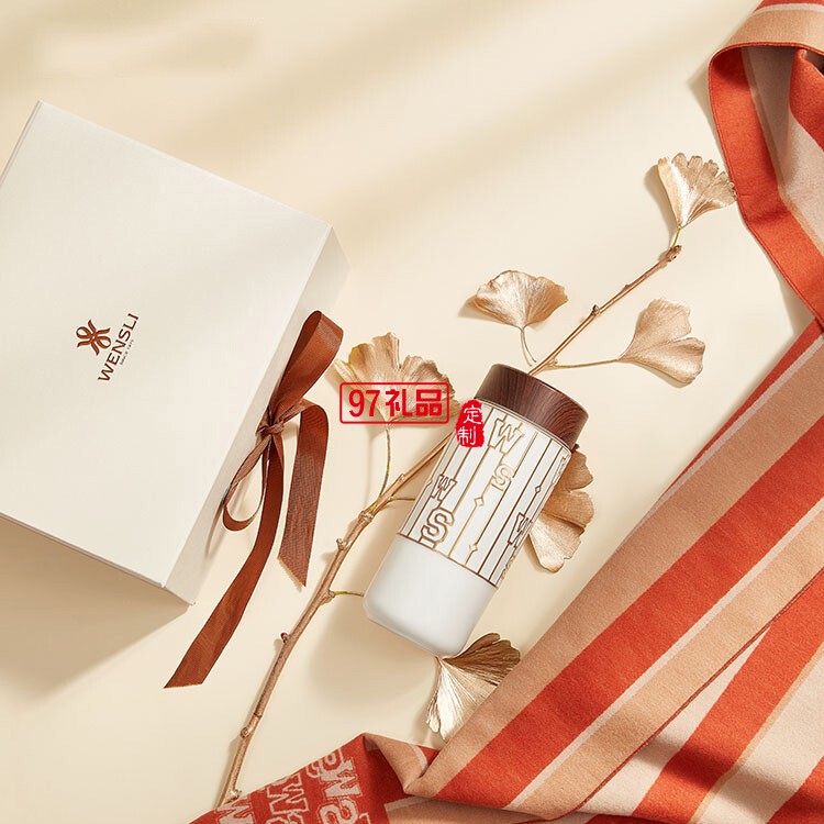 萬事利冬季2022年送禮新款真絲絨圍巾陶瓷隨行杯禮盒
