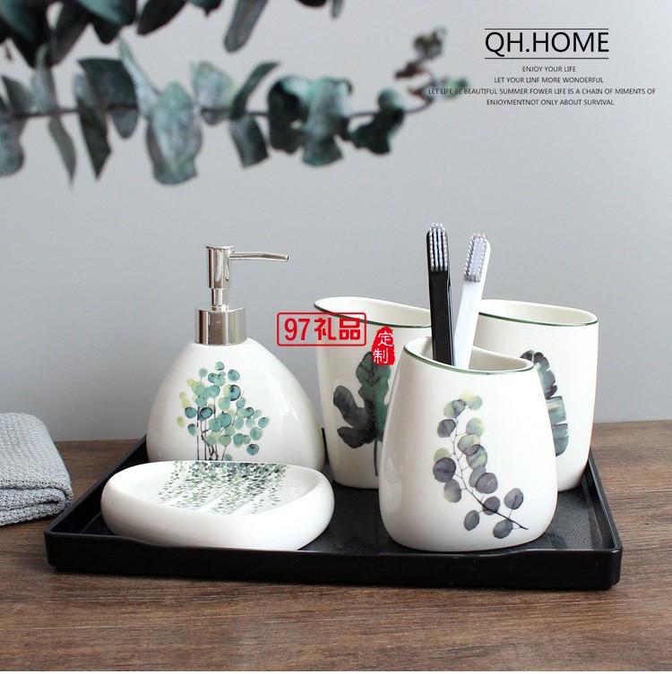 衛(wèi)浴五件套北歐陶瓷洗漱六件套浴室用品套裝結(jié)婚洗漱套裝配托盤