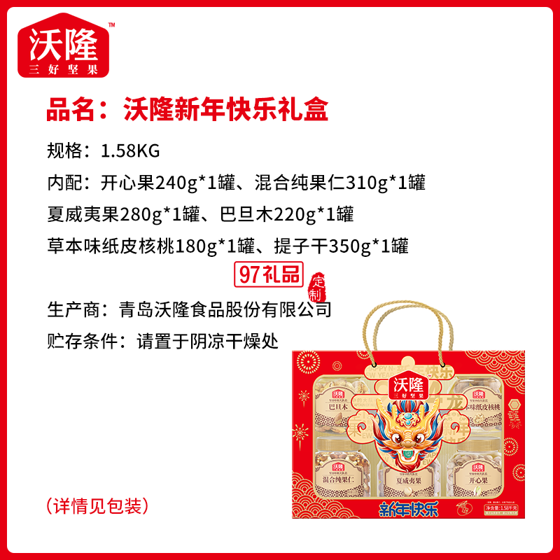 單件凈含量:1580g品名:沃隆堅果禮生產(chǎn)許可證編號:SC11737021401064