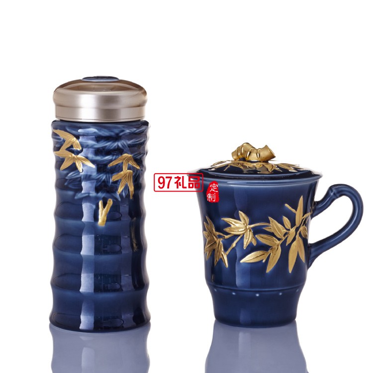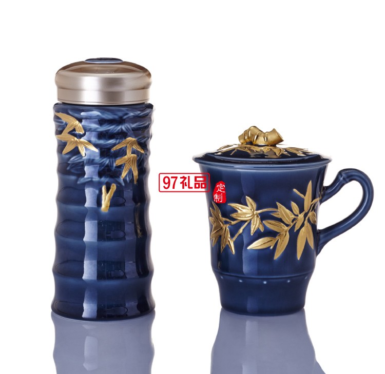 商務典范 大竹節(jié)隨身杯&高杯禮盒 350ml雙層/340ml 鎏金寶石