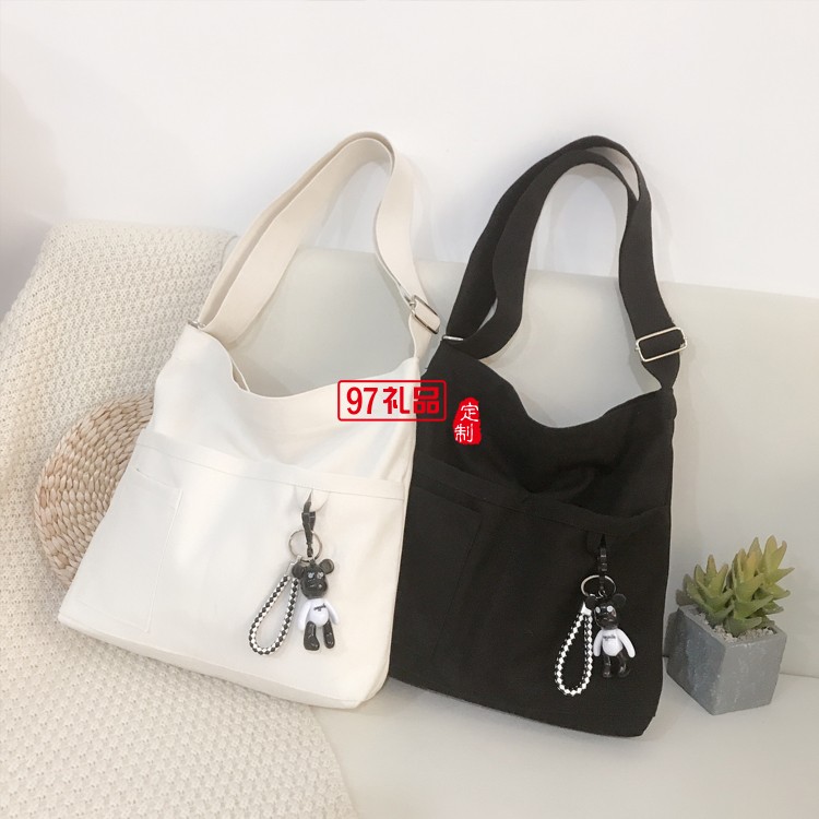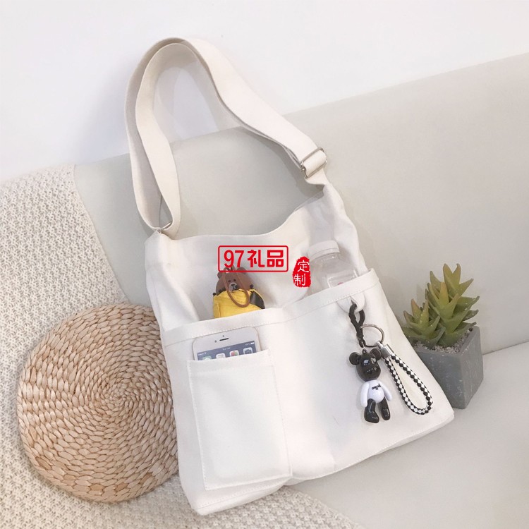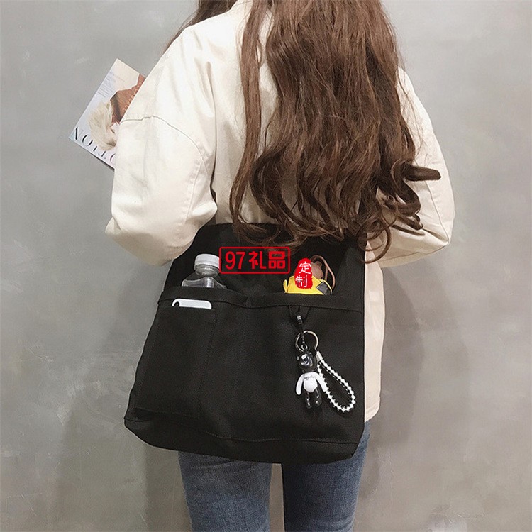 帆布包女2022單肩斜挎包純色文藝帆布單肩包
