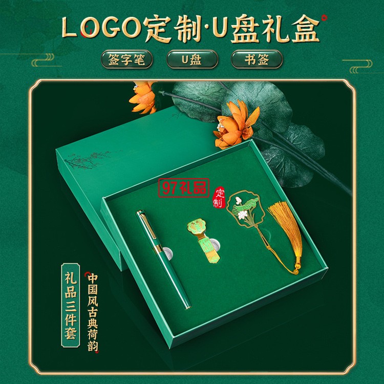 中國(guó)風(fēng)禮品U盤書簽金屬本筆記本簽字筆禮品套裝廣告禮品定制