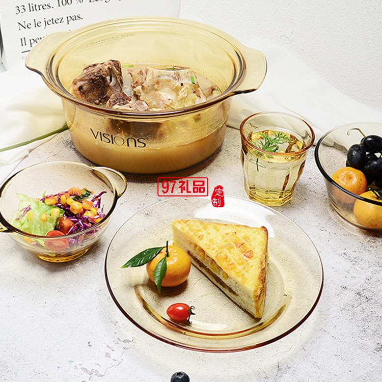 晶彩透明鍋1.5L單柄琥珀鍋玻璃鍋粥鍋奶鍋定制公司廣告禮品