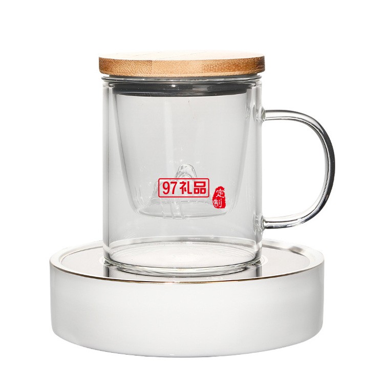 耐高溫玻璃茶杯三件套木蓋茶水分離茶道杯日式高硼硅帶過(guò)濾花茶杯