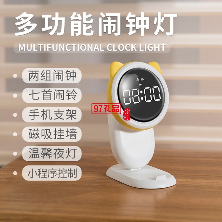 萌寵多功能鬧鐘燈LED數(shù)字鬧鐘定制公司廣告禮品