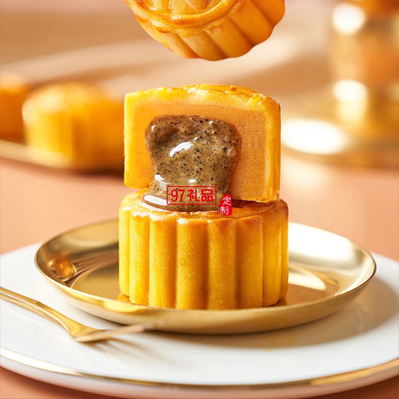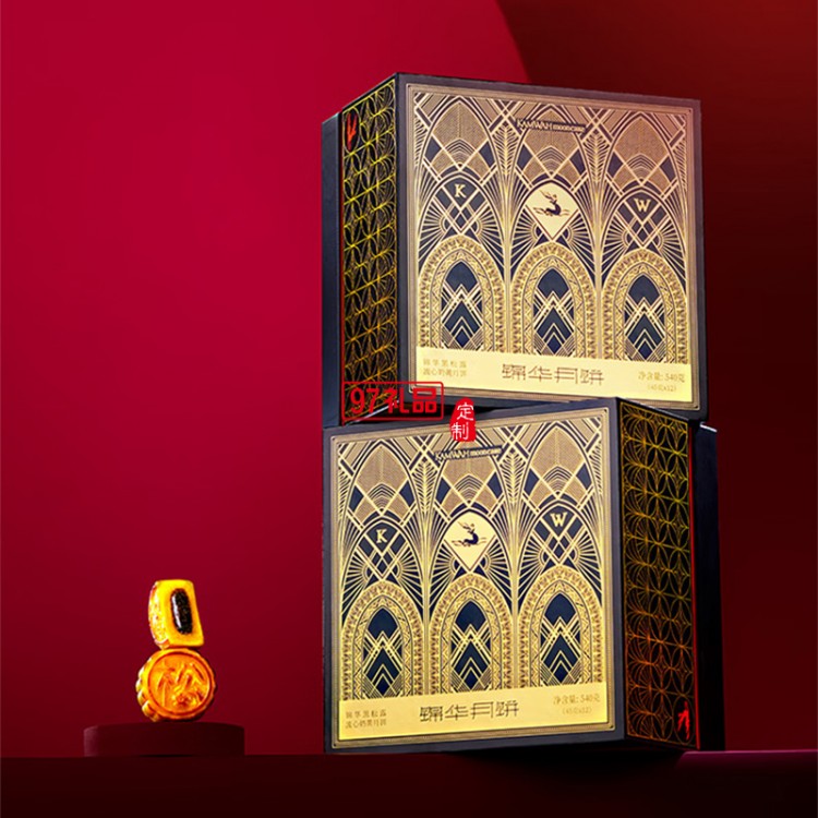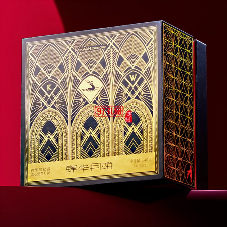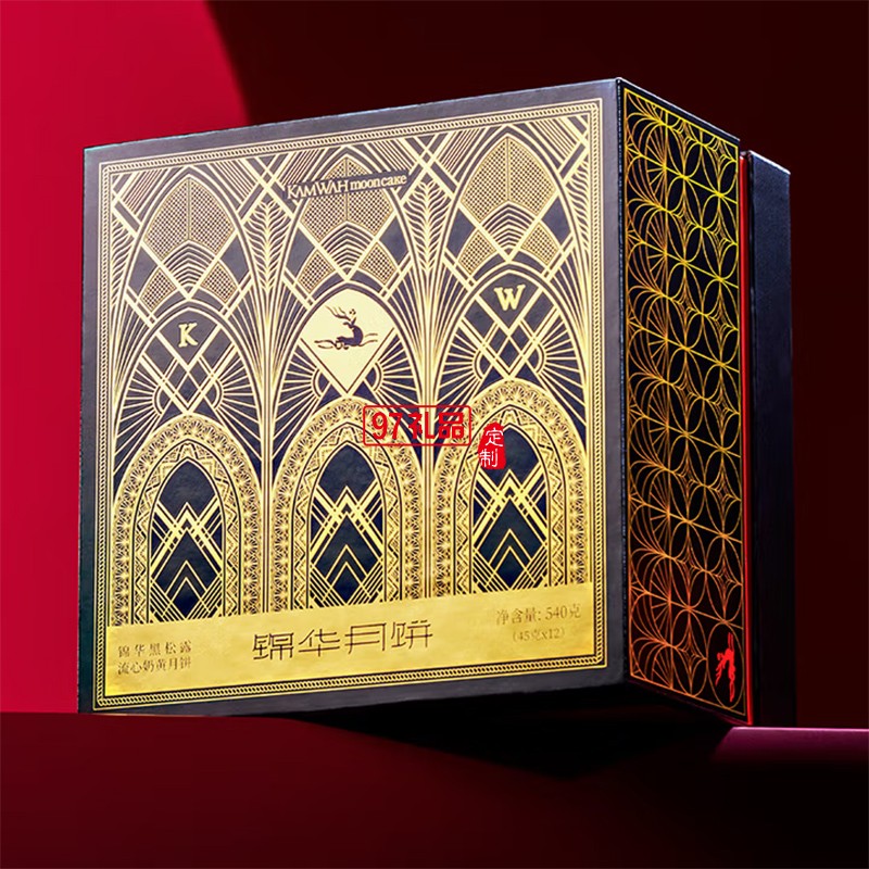 錦華黑松露流心奶黃月餅540g三層精裝禮盒12餅中秋禮品