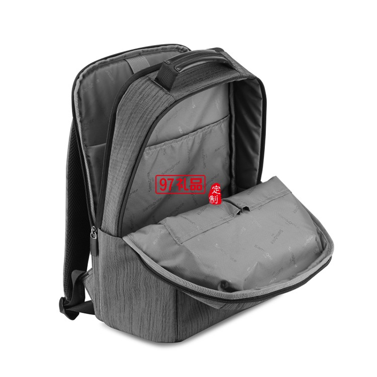 雙色編織面料新秀麗雙肩包灰黑色