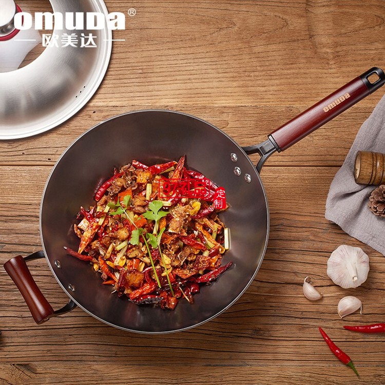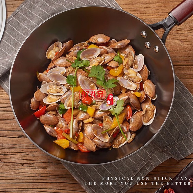 歐美達(dá)無(wú)涂層鐵鍋不粘炒鍋炒菜鍋 LTC30 30cm定制公司廣告禮品