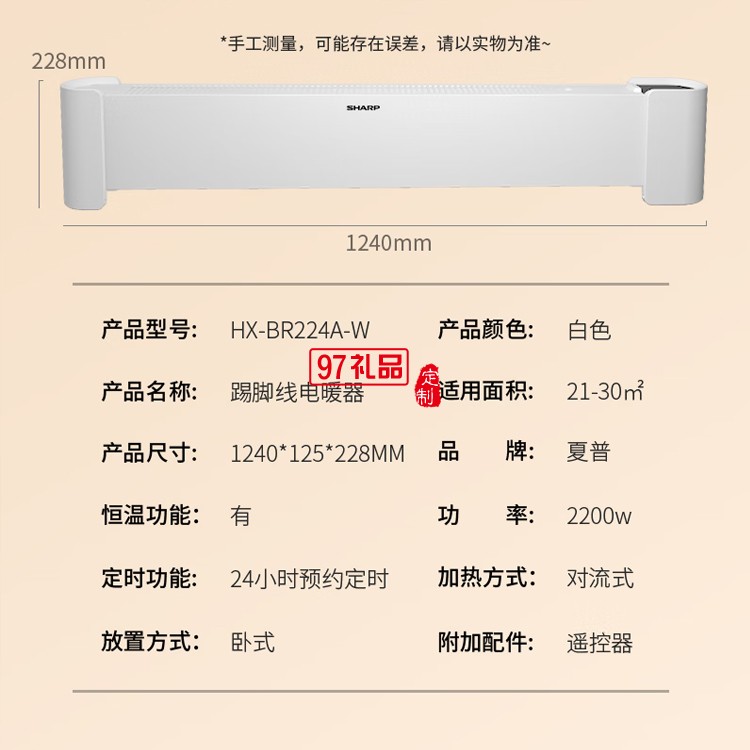 夏普石墨烯踢腳線取暖器智能電暖器HX-BR224A-W定制公司廣告禮品
