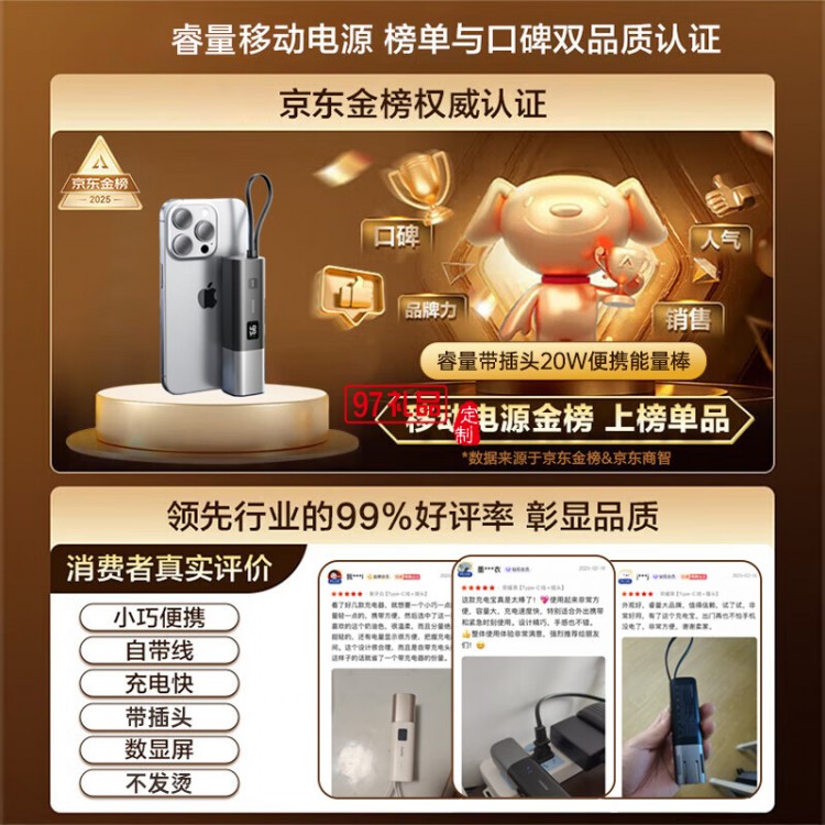 能量棒 自帶雙線+快充+插頭移動(dòng)電源
