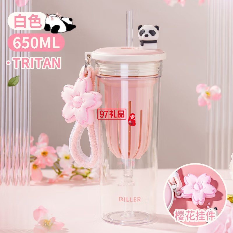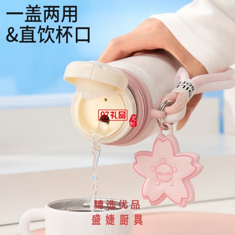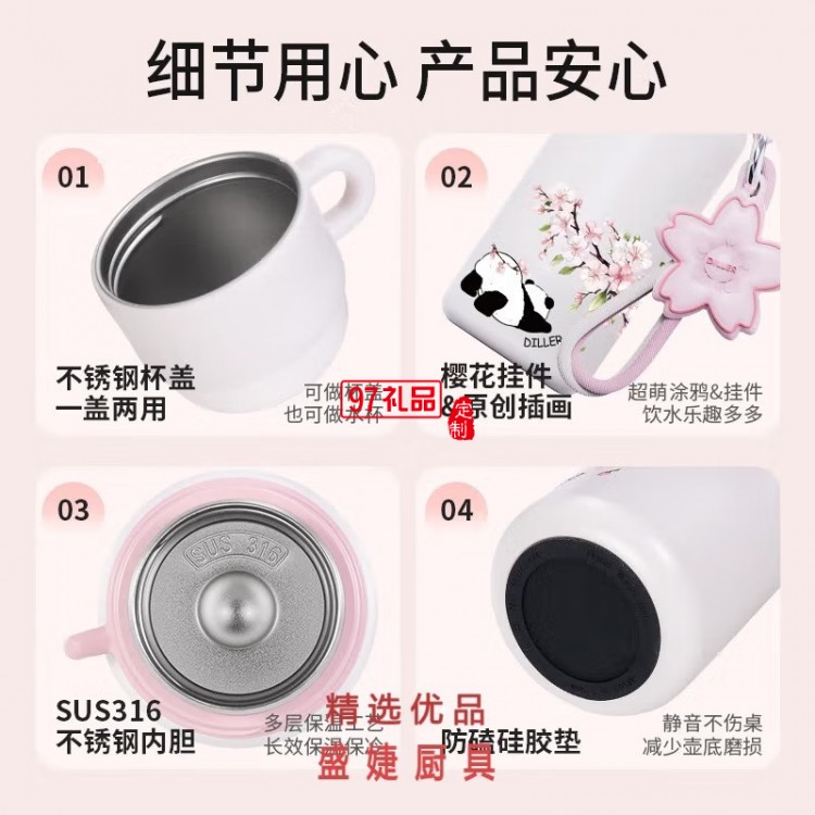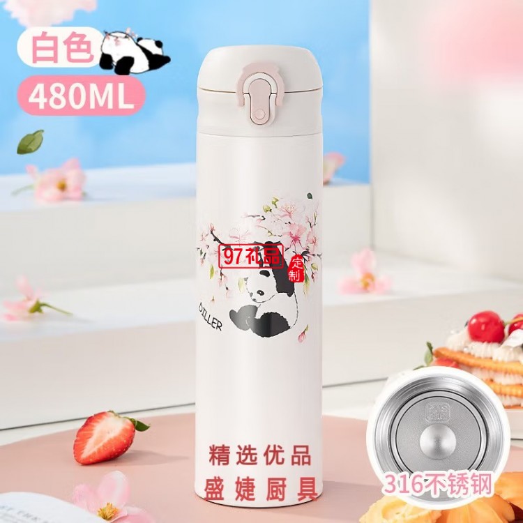 迪樂(lè)貝爾熊貓櫻花保溫杯大容量316不銹鋼水杯倒水蓋杯子 女生水杯