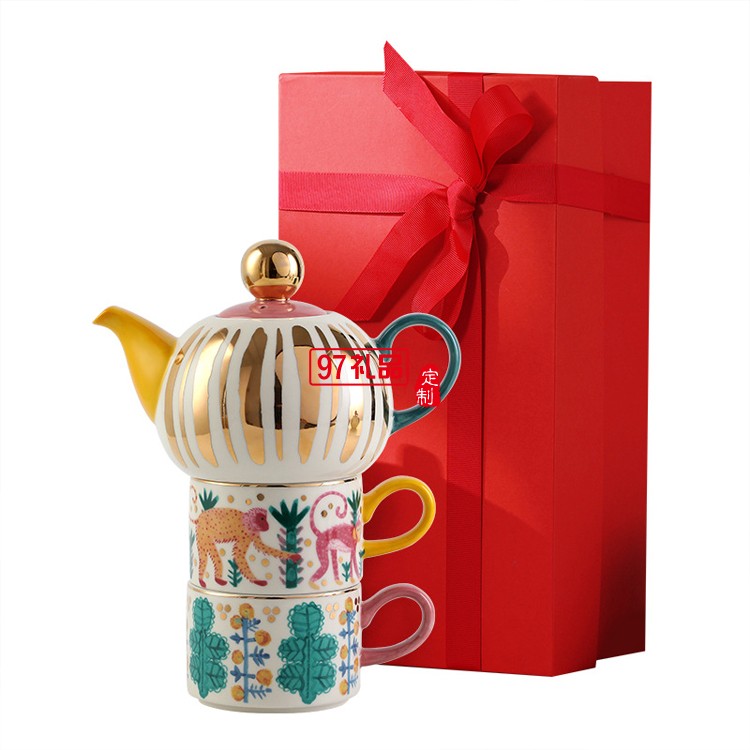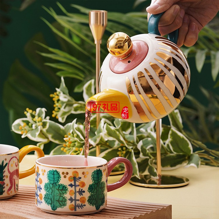 英式茶壺套裝田園風(fēng)ins輕奢水具手繪一壺二杯咖啡杯壺禮盒禮品