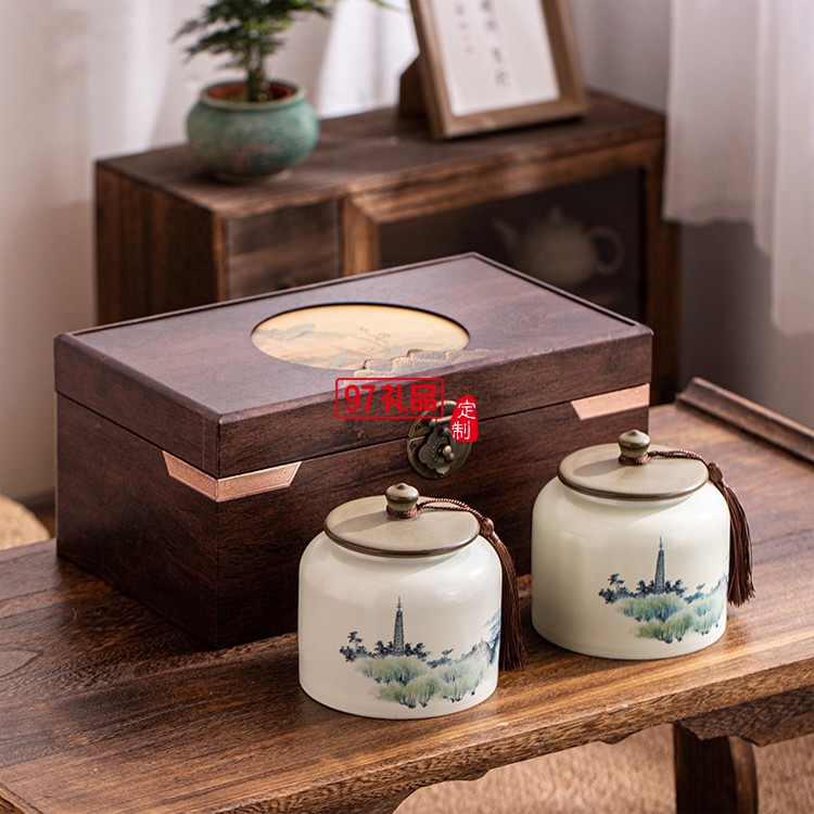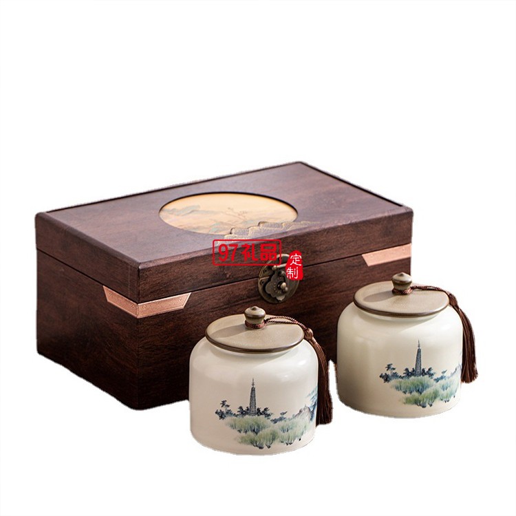 綠茶陶瓷茶葉罐包裝盒空禮盒中國(guó)風(fēng)復(fù)古密封罐