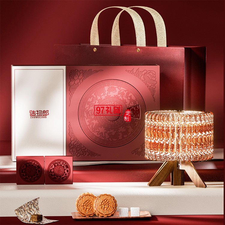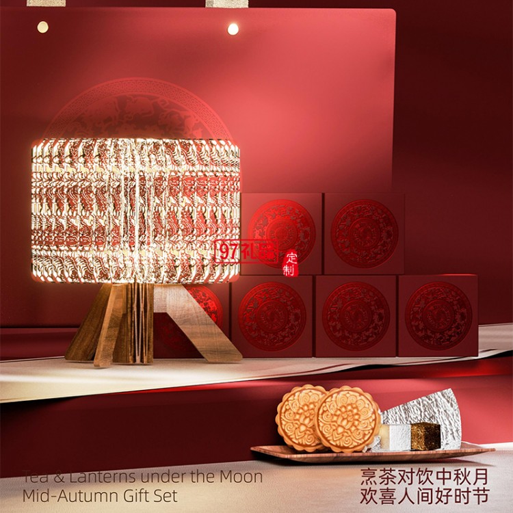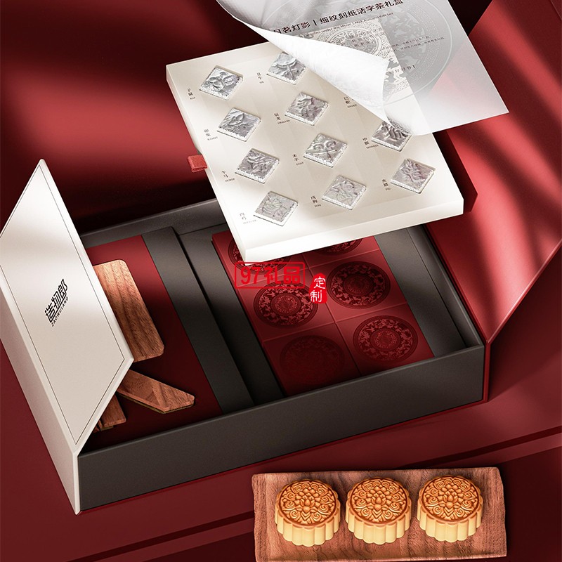月茗燈影細紋刻紙活字茶中秋新款月餅禮盒裝定制商務(wù)伴手禮