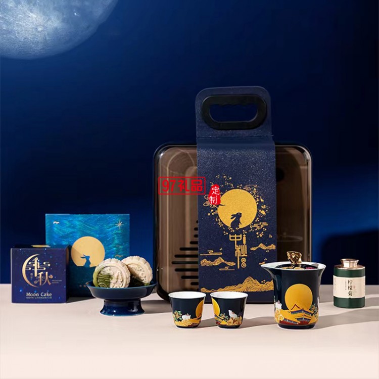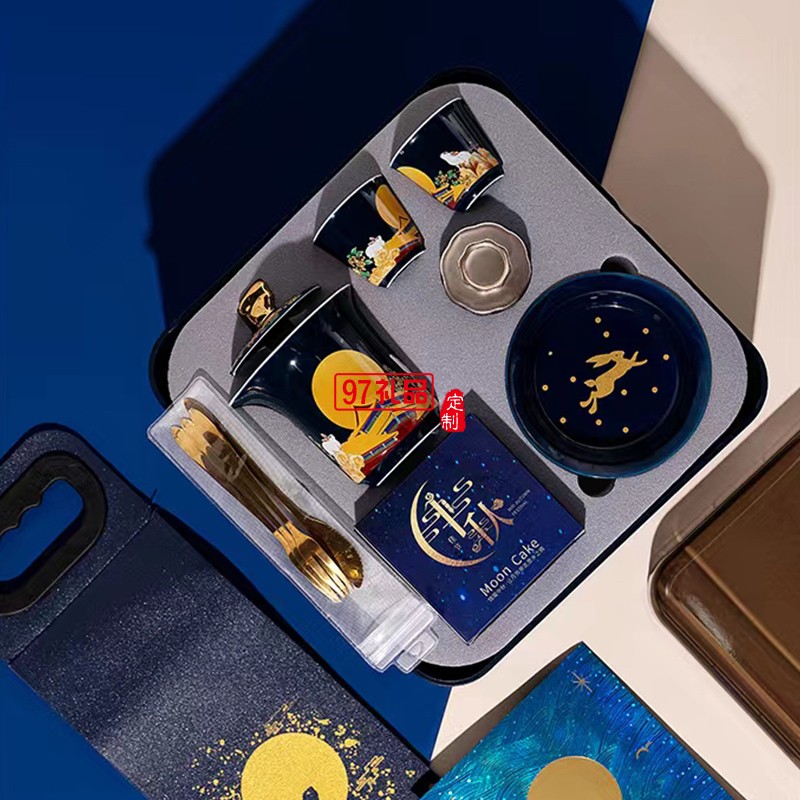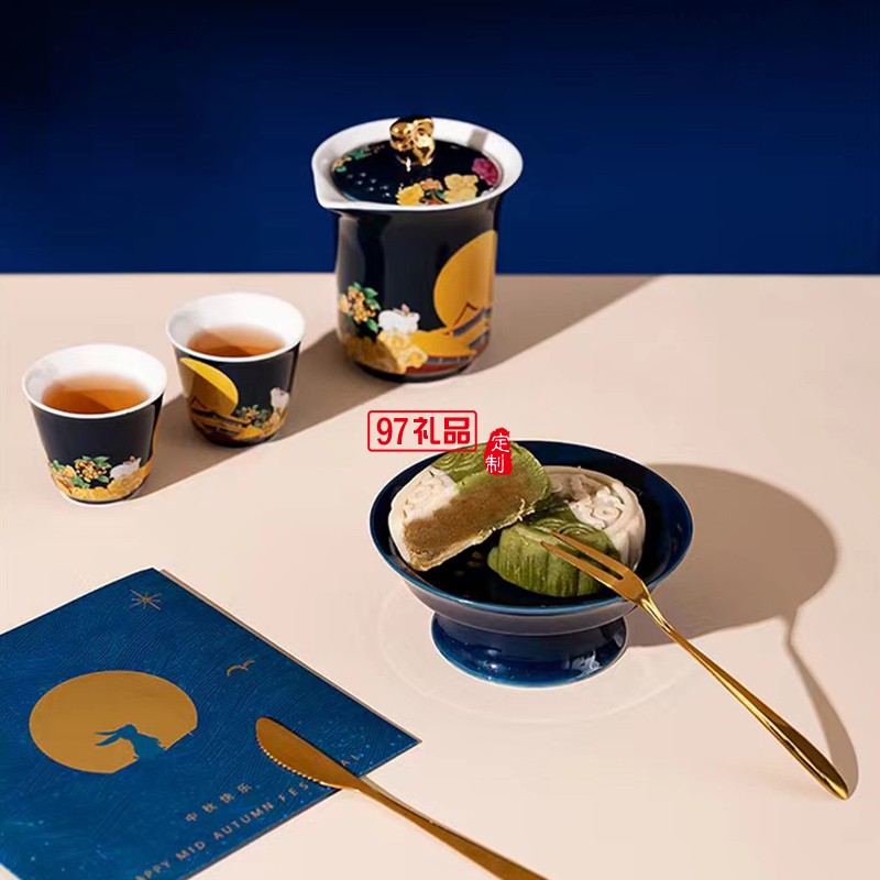 中秋桂月團圓?國風(fēng)陶瓷茶具套裝 手繪玉兔品茗杯壺 送禮盒裝
