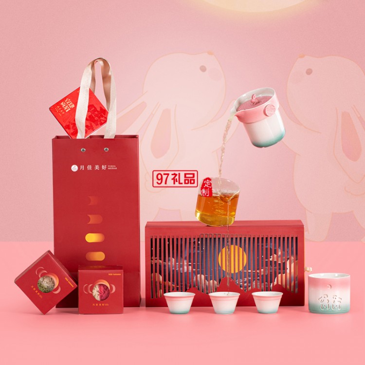 桂香盈壺彩釉中秋茶具禮盒月滿團(tuán)圓圖案 陶瓷壺杯套裝 送長(zhǎng)輩禮品裝