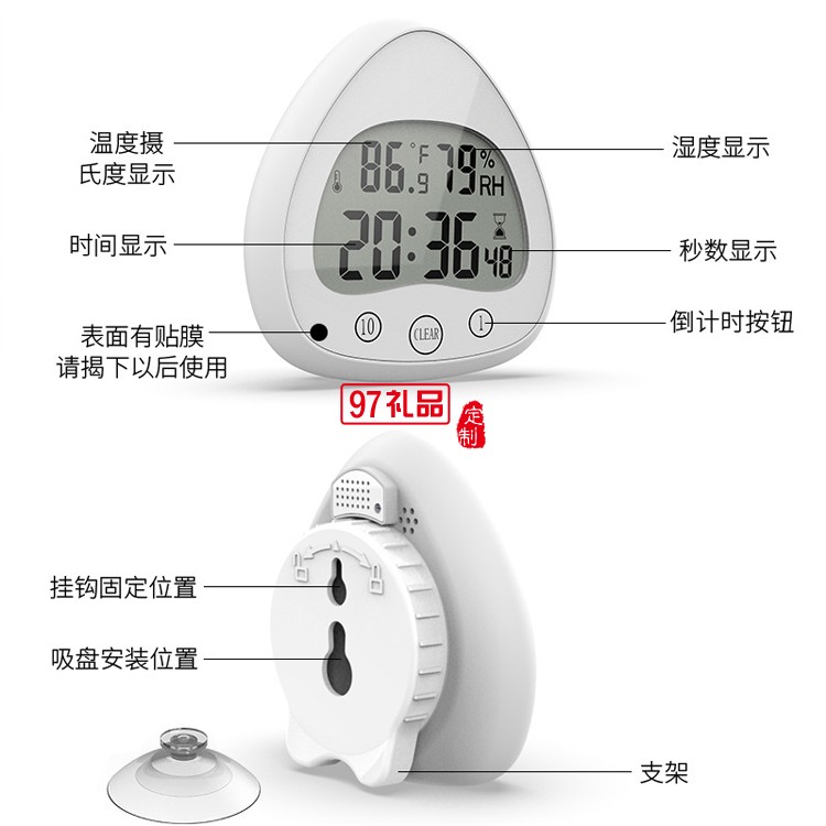 浴室鐘lcd溫濕度數(shù)字顯示靜音定制公司廣告禮品