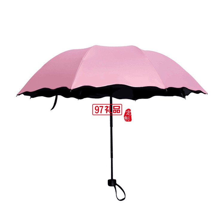 小黑傘 黑膠遇水開花晴雨傘 折疊雨傘戶外三折廣告?zhèn)?可定制logo