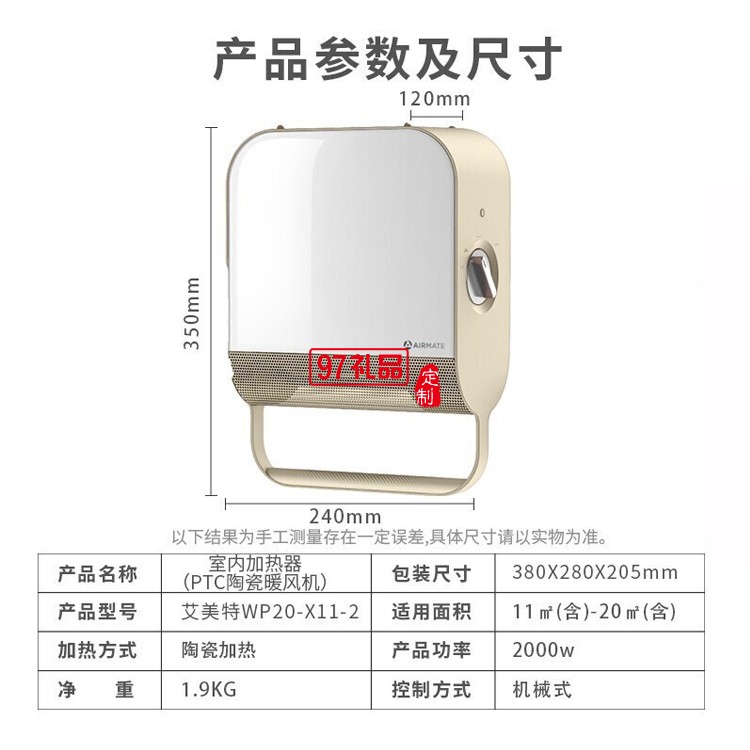 艾美特暖風機美妝鏡節(jié)能浴室取暖器WP20-X11-2定制公司廣告禮品