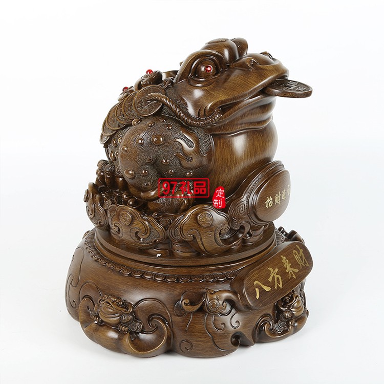 招財(cái)金蟾擺件仿木八方來財(cái)樹脂工藝品