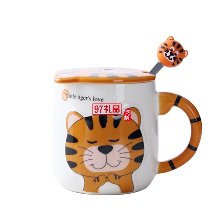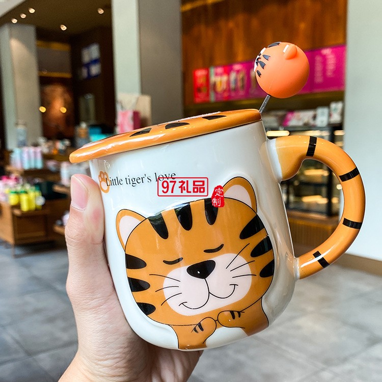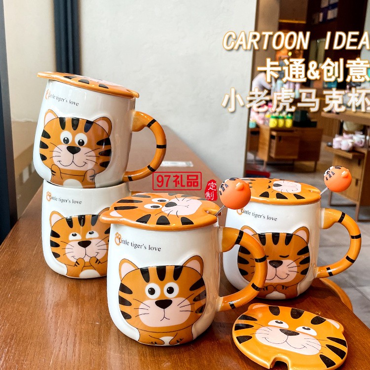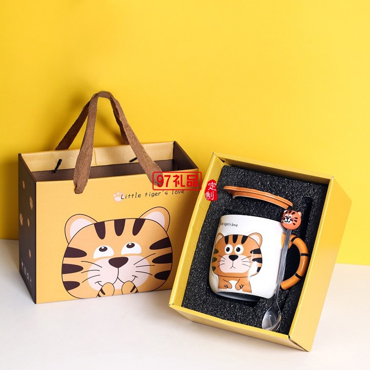 老虎卡通陶瓷杯 ins虎年馬克杯活動伴手禮品禮盒套裝