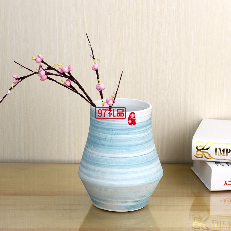 景德鎮(zhèn)陶瓷花瓶套裝 客廳擺件工藝品 藍(lán)色螺紋陶瓷兩件套花瓶擺件
