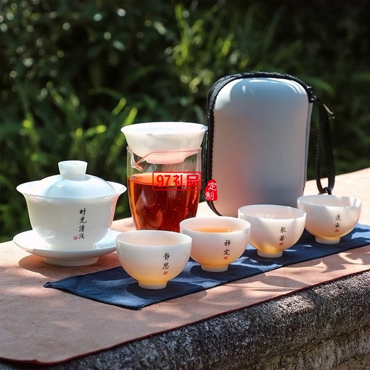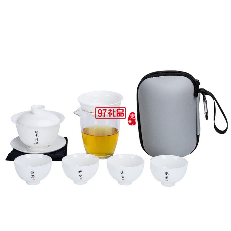 白瓷旅行茶具簡(jiǎn)約套裝一壺四杯戶外蓋碗便攜式羊脂玉快客杯