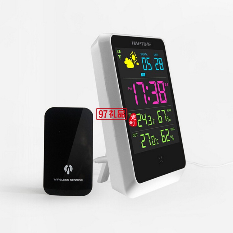 日期、時間、溫濕度顯示功能 鬧鐘和貪睡功能 采集室內(nèi)外溫濕度變化趨勢預(yù)測晴天/多云/雨/陰天四種天氣狀態(tài) 室內(nèi)、外機溫濕度無線接收與發(fā)射(空曠距離大于30米) 12小時或24小時制式選擇。 攝氏度或華氏度轉(zhuǎn)換。 溫、濕度最大最小記錄查詢。 室外機低電顯示。 彩色背光顯示。
