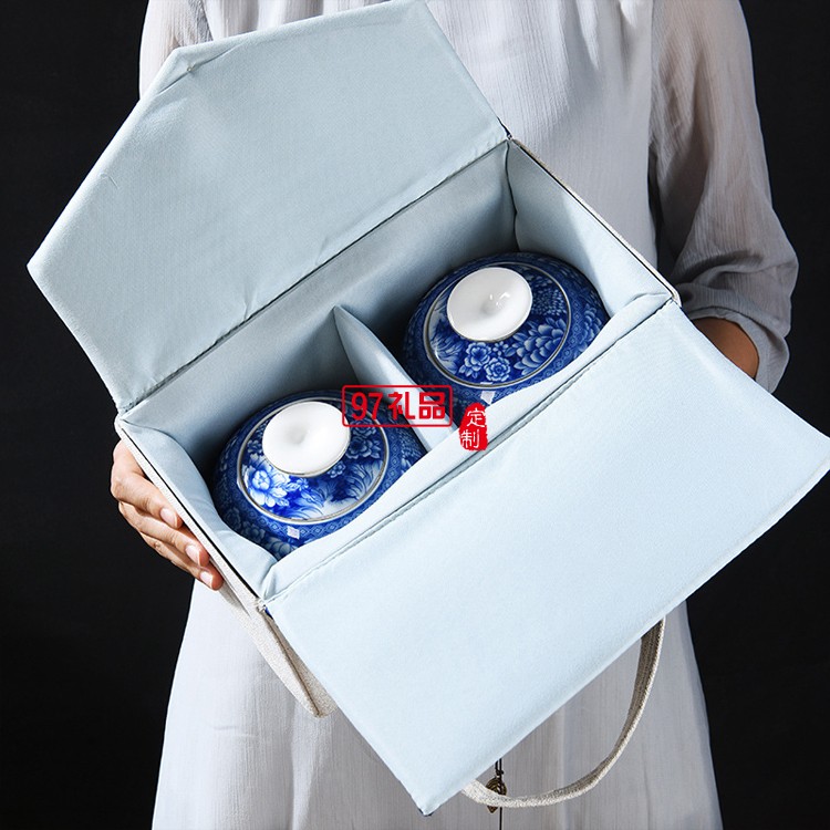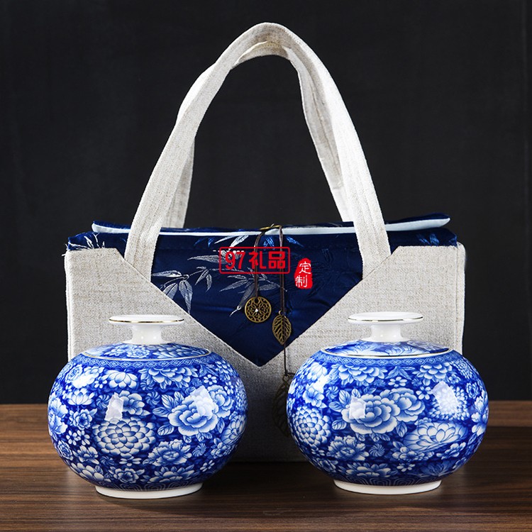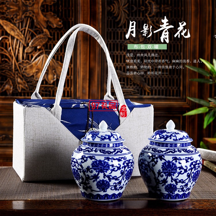 青花瓷茶葉罐月影青花布包禮盒陶瓷密封罐