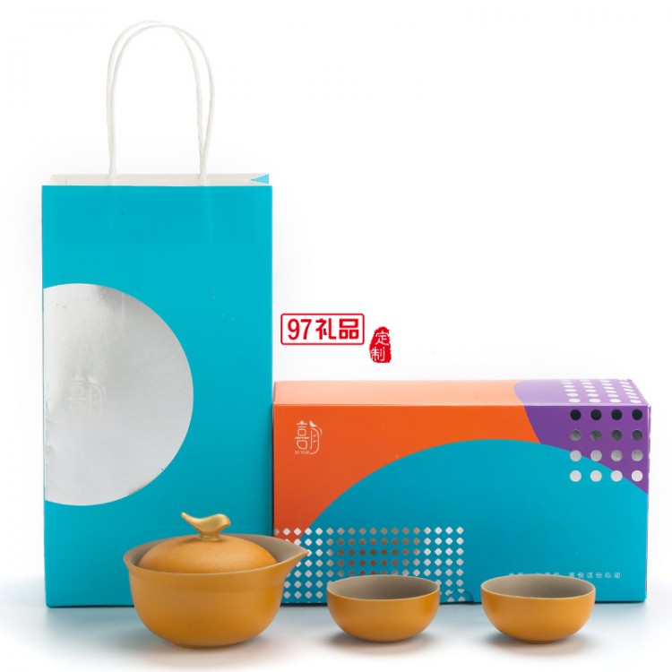 中秋創(chuàng)意禮品茶具定制陶瓷功夫泡茶器 一壺兩杯