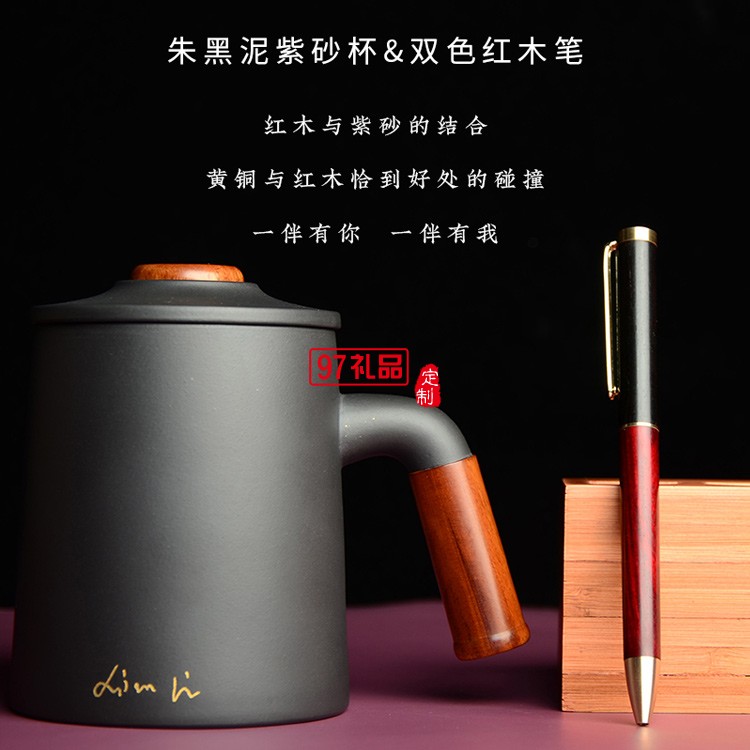紫砂杯、紅木簽字筆商務套裝