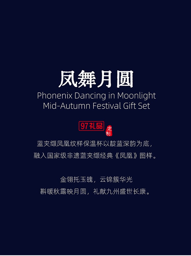 鳳舞月圓青花瓷圖案保溫杯月餅中秋禮盒