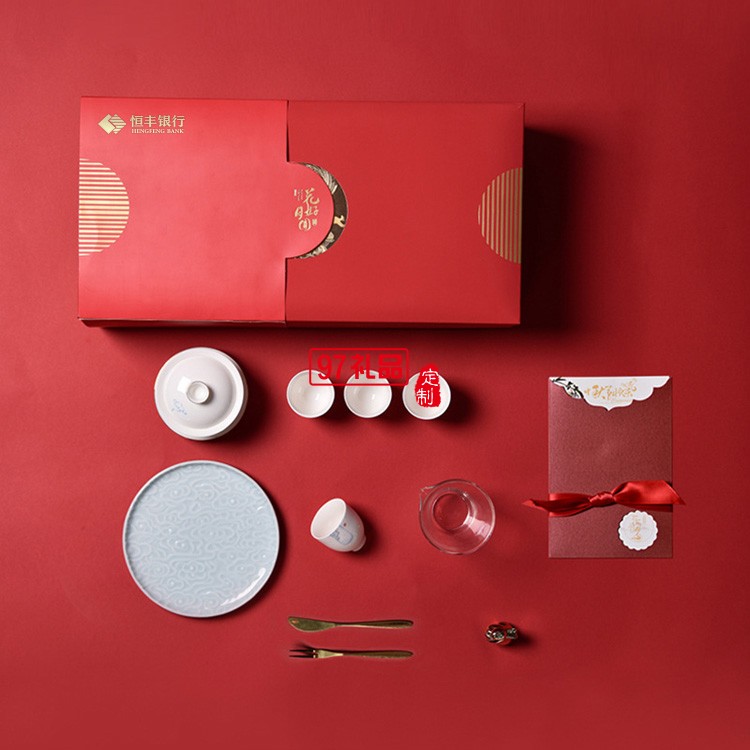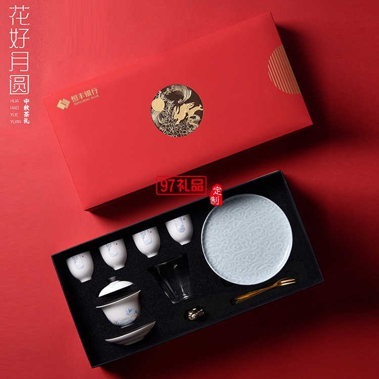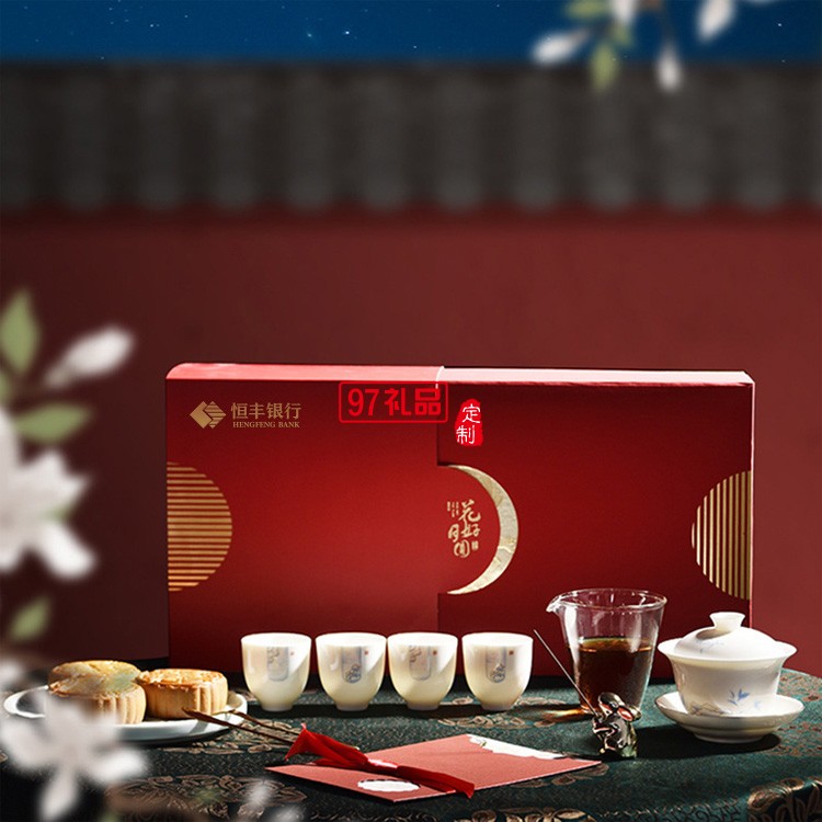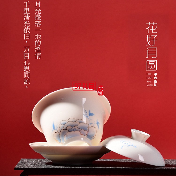 中秋國(guó)潮羊脂玉牡丹禮品茶具
